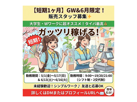 【大学生から主婦まで】連休中の販売スタッフ
